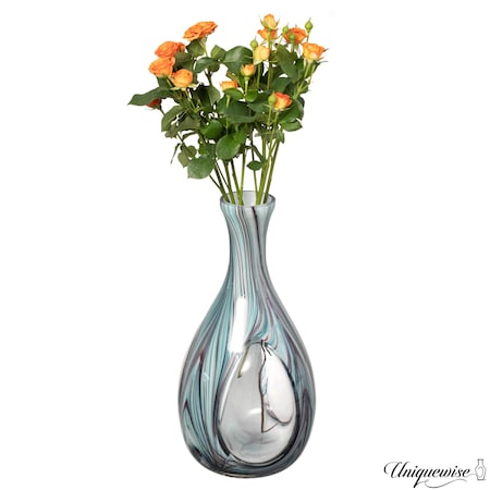 16-Inch Multitone Glass Table Vase in Blue Hue - Minimalist, Decorative Boho Vase with Rustic