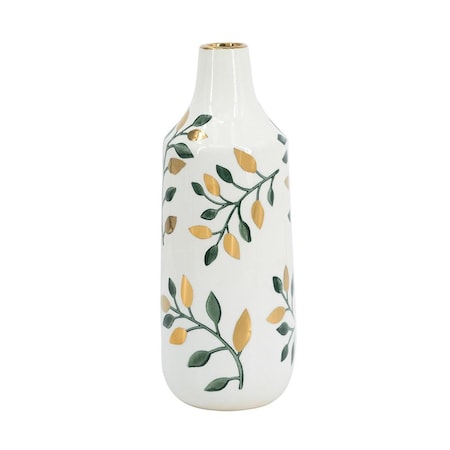 Decorative White Metal Floor Vase With 2 Gold Handles for Entryway, Living Room or Dining Room