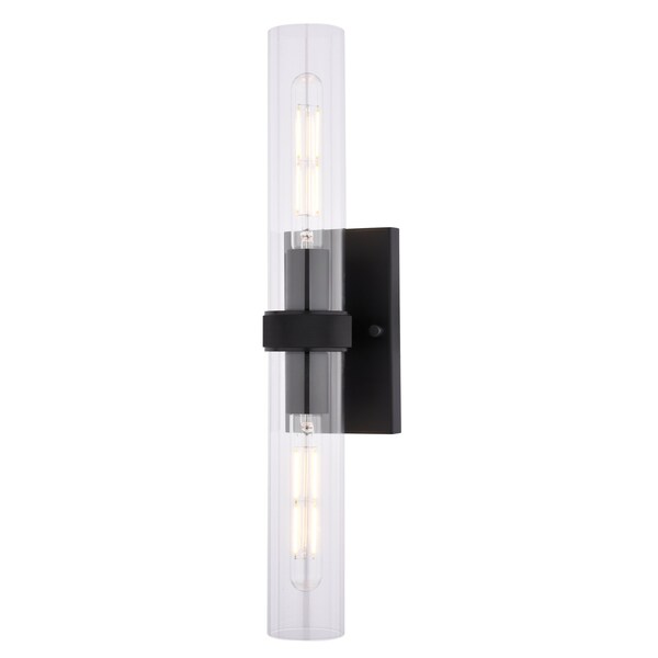 Bari 2-Light Matte Black Wall Sconce, Clear Glass Shade, Dimmable Vanity