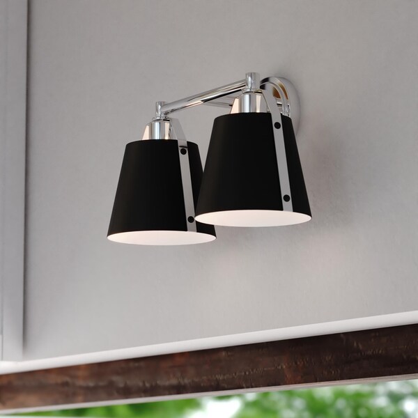 Barrington 2 Light Black and Chrome Industrial Bathroom Vanity Fixture with Metal Shade