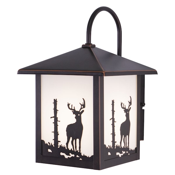 Bryce 1 Light Bronze Rustic Deer Tree Outdoor Wall Lantern White Glass