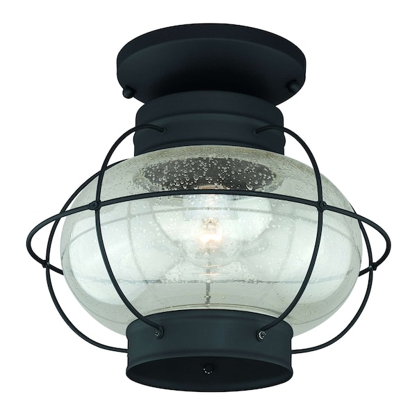 Chatham Black Coastal Globe Outdoor Flush Mount Ceiling Light Clear Glass