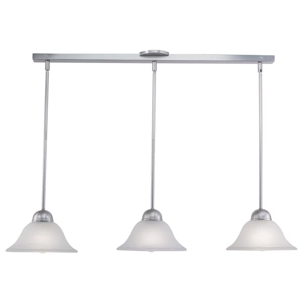 A simple yet sophisticated design is fitting in the collection named Da Vinci. This fixture is finished in brushed nickel and has white alabaster glass shades. It is the perfect addition to any space in your home. Customize each pendant independently to your desired height with the included down rods.
