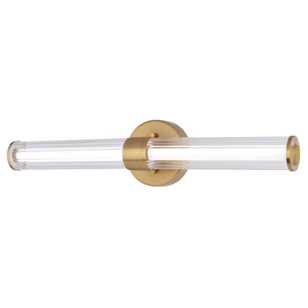 The Division collection delivers sleek contemporary style with innovative LED technology. This vanity features a layered design of clear ribbed glass surrounding an inner frosted acrylic tube, producing a refined and dimensional lighting effect. Finished in bright gold for a touch of modern glamour, it offers dimmable, energy-efficient illumination with 3CCT color temperature adjustability. Damp rated and ideal for bathrooms or powder rooms, Division blends cutting-edge function with timeless design.