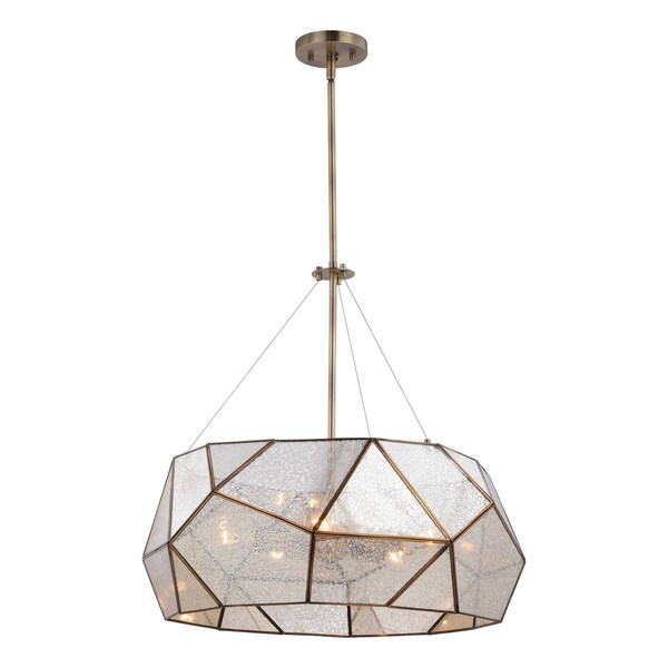 Faceted glass defines the dramatic beauty of the Euclid pendant collection. Aged brass pairs with asymmetric panels of mercury glass for a perfect throwback to a mid-century modern classic. Combine that with vintage Edison style filament bulbs to complete the look. Height is adjustable with the included down rods; compatible with sloped ceilings. These pendants would be a stunning addition to any kitchen, dining area, or foyer.