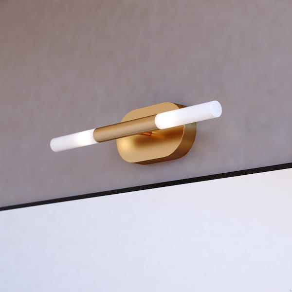 Fulton 2 Light Integrated LED Gold Brass Contemporary Bathroom Vanity Fixture White Shade