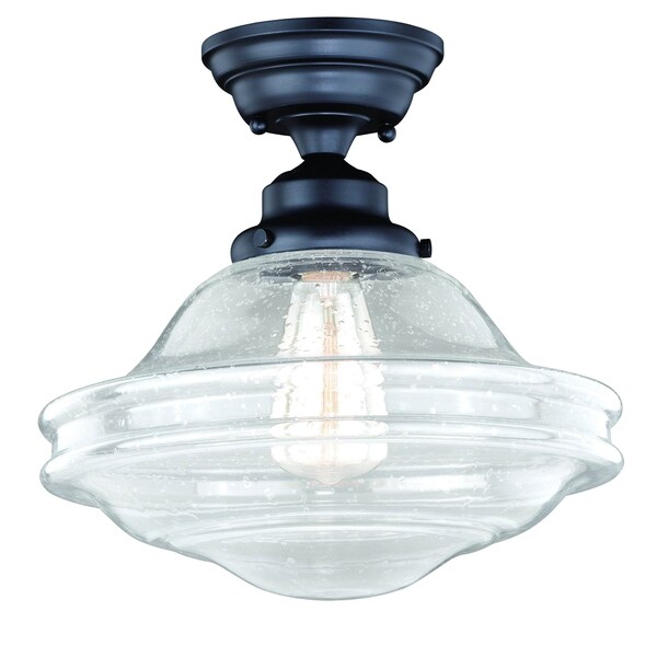 Huntley 12-in W Bronze Farmhouse Schoolhouse Semi Flush Mount Ceiling Light Clear Glass