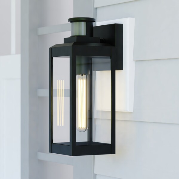 Kinzie Black Motion Sensor Dusk to Dawn Outdoor Wall Light Clear Glass