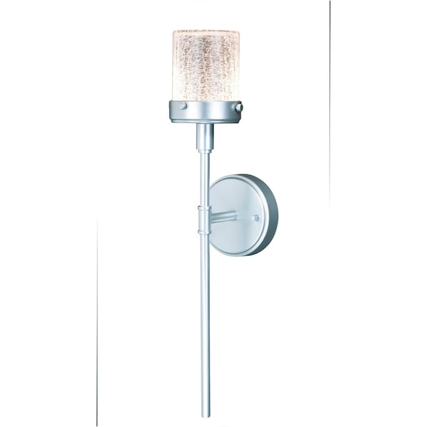 Long and lean describes this collection called Levanto. Vertical torch-like supports are stylishly topped off with beautiful clear crackle glass. Featuring a painted satin nickel finish, this wall mounted light is a trendy touch to any outdoor space. An integrated LED light source provides energy saving, no bulb changing convenience, low maintenance and long lasting performance. Ideal for your porch, entryway, garage, or any other interior or exterior area of your home.