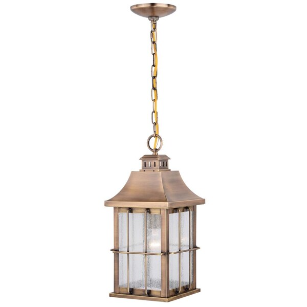 The Quincy collection is made of solid brass and will stand the test of time in coastal areas or places with severe weather. Quality brass construction equates to rust-proof and durable long lasting fixtures. Traditional beauty is at its finest in the Quincy outdoor collection. Warm tones of antique brass highlight the simple sweeping lines of the lantern shaped fixtures. Clear seeded glass panes are accentuated with grid like trim to add an old-world charm. This outdoor pendant is ideal for your porch, entryway, or any other area of your home.