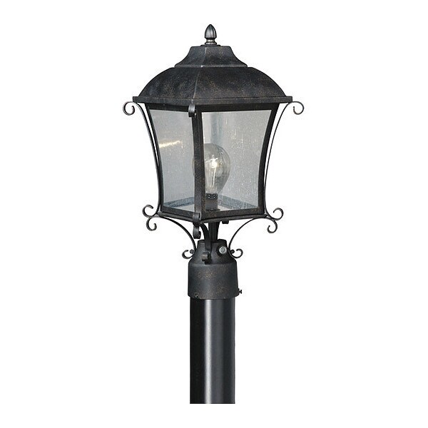 Sonnet 8-3/4" Outdoor Post Light Gold Stone with Seeded Glass