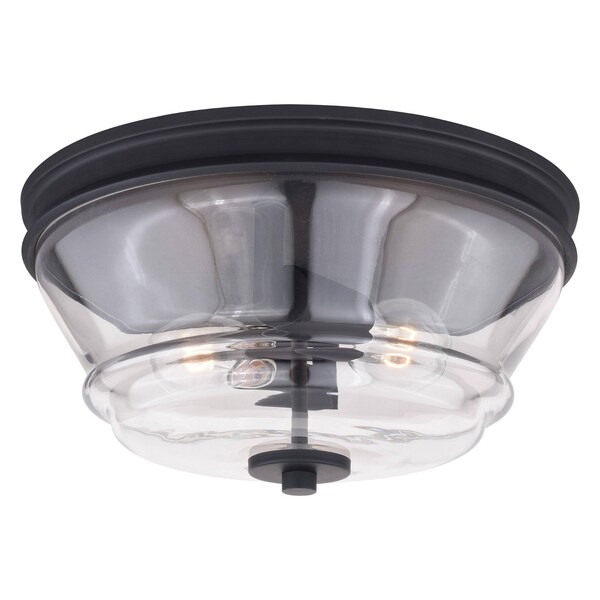 Clean retro lines define this beautiful collection called Toledo. Notes of industrial and farmhouse tradition are defined with the elegance of clear blown glass. Combine that with a vintage Edison style filament bulb to complete the look. This flush mount ceiling light is ideal for hallways, living rooms, bedrooms, entryways or utility rooms.