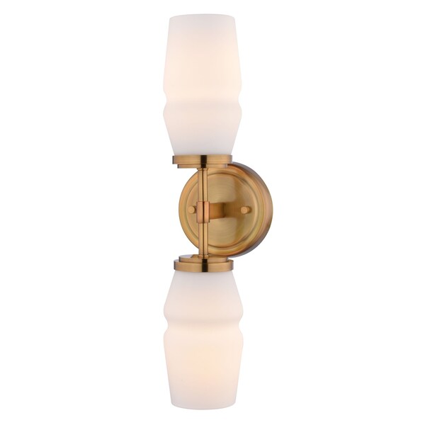 Bring a touch of mid-century modern glamour to your bathroom with the Warren vanity light. The elongated silhouette and chic, frosted opal glass shades offer a contemporary twist on a classic design. The warm brushed brass finish adds a touch of sophistication, making it a perfect choice for an on-trend bathroom upgrade. Enjoy installation flexibility with its dual mount capability - hang it vertically or horizontally to suit your space. Add this vanity wall sconce light fixture to any bath, hallway, or bedroom for an on-trend update.