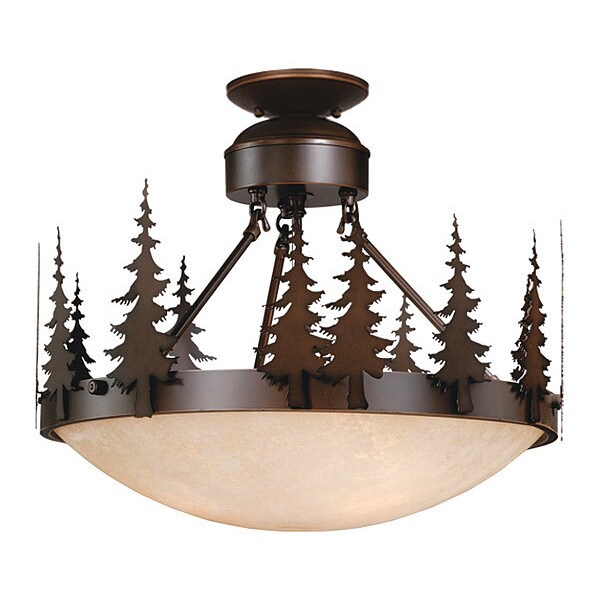 Yosemite 18" Semi-Flush Mount (Dual Mount) Burnished Bronze with Amber Flake Glass