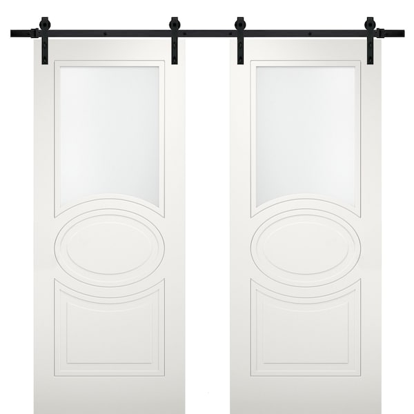 Collection of classic painted doors with a discreet design. Clean lines, simple and unabashed design. Multi-layer finishing with enamels followed by matt varnishes makes the surface smooth, almost velvety. Premium decorative films are made on the basis of polypropylene. A special feature of this fims is outstanding imitation effect of a painted surface. Free from solvents and formaldehyde the Premium films are also extremely environmentally friendly and contribute to a healthier living climate. High quality material surface makes it easy to clean and guarantees outstanding resistance against mechanical stress and chemicals.. Finish - white paint.Door core - MDF (engineered wood).Thickness of the door - 1 1/2". Thickness of the glass - 1/6", 3 lites of Opaque Glass. Doors have NO holes for the hardware. What included: - 2 doors slabs; - steel rails 13FT total; - 4 hangers with wheels; - 4 door stops; - 2 floor guide; - all mounting screws;
