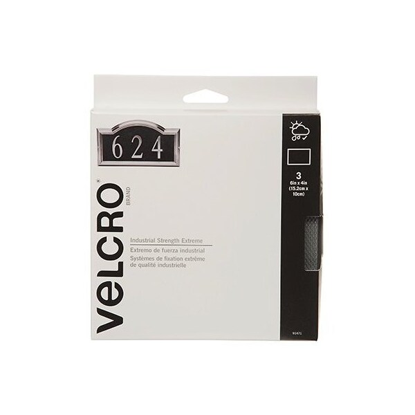 Extreme, 3 Count, 4 x 6, Titanium Strip, Specially Formulated Adhesive For Rough Surfaces Such As Concrete Certain Types Of Brick, Designed For All Weather Conditions, UV Resistant, Strong Hook Loop Closure