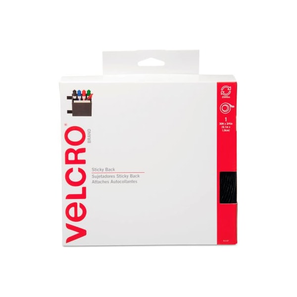 Reclosable Fastener, 30 ft, 3/4" Wd, Black