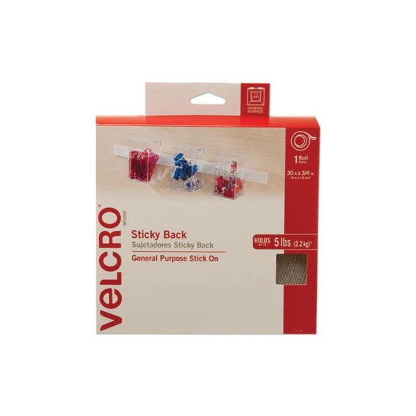 Velcro, STICKY-BACK FASTENERS, REMOVABLE ADHESIVE, 0.75in X 30 FT, WHITE