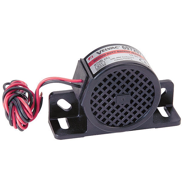 Vehicle Backup Alarm, Alarm Type Fixed, Alarm Tone Type Tonal, Maximum Sound Level 87 dB, Operating Voltage 12V DC, Minimum Sound Level 87 dB, Overall Length 3 1/2 in, Overall Width 1 1/4 in, Overall Height 2 3/4 in, SAE Type Rating Type C, Connector Type Wire Leads, Mount Type Grommet, Speaker Direction Forward-Facing, Color Black, Housing Material Glass/Nylon, Current 300 mA, Features Uses Multi-Stranded Wire, Epoxy Coated, Manufacturer Warranty 1 yr