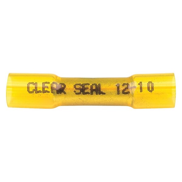 Butt Splice Connector, Connection Type Crimp, Insulation Material Heat Shrink, Insulation Color Yellow, Maximum Operating Temperature 221 Degrees F, Maximum Voltage 600 V, Minimum Wire Size 12 AWG, Maximum Wire Size 10 AWG, Standards CSA Certified, UL Listed, Termination Style Crimp, Contact Material Copper, Overall Length 1.75 in, RoHS Compliant Yes, Seam Style Overlapped, Barrel Inside Diameter 0.142 in, Package Quantity 10