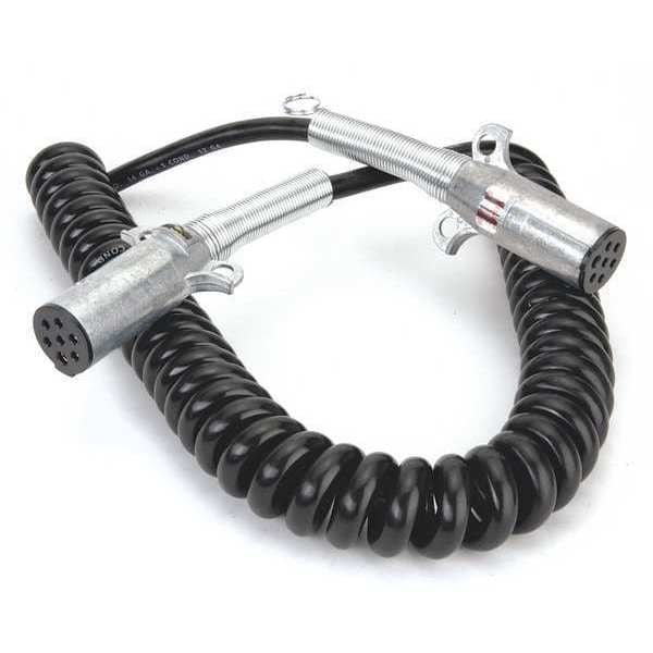 Cord, Product Type Cord, Connection Type 7-Way, Contact Material Brass, For Use With Vehicle and Trailer, Insulation Material Plastic, Wire Gauge 0.1 ga, 0.5 ga, Wire Length 15 ft, Features 12 in Lead on Both Ends, Coiled, Durable Black Outer Jacket, Heavy-Duty Zinc Die Cast Plugs with Spring Guards, Operating Temperature Range of -55 Degrees F to 185 Degrees F, Includes Spring Guard, Standards SAE J-2394
