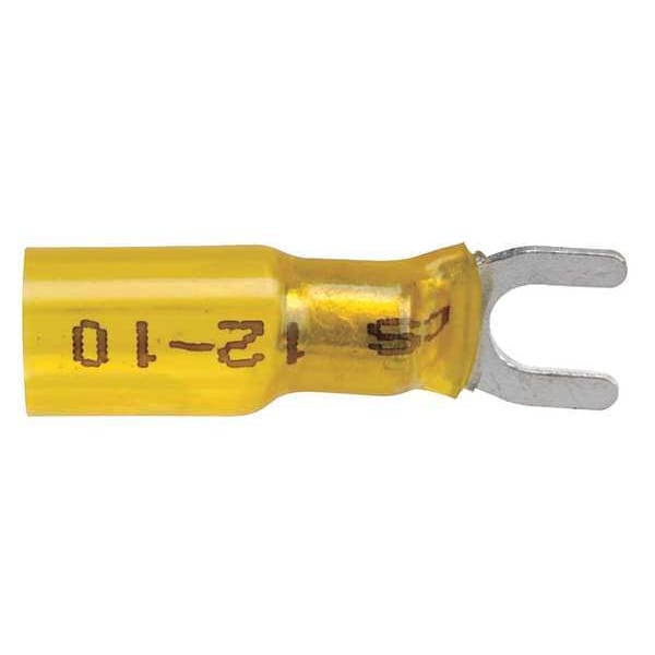 Fork Terminal, #10 Stud Size, 14 AWG, 600 V, Heat Shrink Insulated, Blue, 10 PK