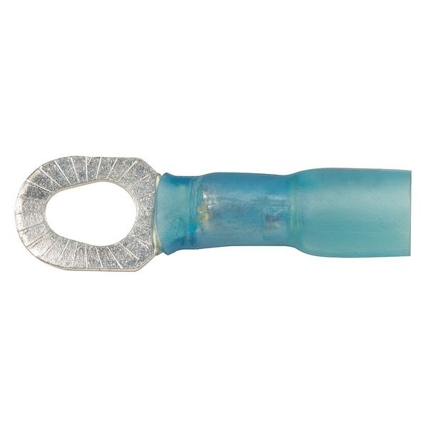 Ring Terminal, #6, #8, #10 Stud Size, 14 AWG, 600 V, Heat Shrink Insulated, Blue, 10 PK