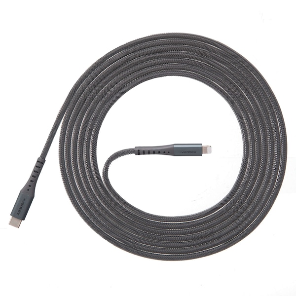Ventev Chargesync Alloy USB-C to Apple Lightning CableThese patented chargesync alloy cables last longer and stand up against the toughest situations, with an ultra-sleek brushed aluminum housing, oversized strain relief, and braided high-tensile wrap providing a premium finish and no-fray durability. The chargesync alloy USB-C to Apple Lightning cable is the ideal charging solution for Apple devices, providing the fastest charge while using USB Power Delivery technology, a wrap for easy cable management is included, and it's MFi certified. Ventev's guarantees their products to be free of defects in material and workmanship, so if a product doesn't perform as specified, they'll replace it.Product Features:Convenient charging from any standard USB-C port to Apple Lightning deviceAllows fastest charging for Apple devicesReinforced strain relief to resist breakageDurable high tensile wrapVelcro cable wrap includedMFi certified
