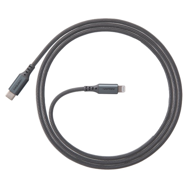 Ventev Chargesync Alloy USB-C to Apple Lightning Cable 4ftThese patented chargesync alloy cables last longer and stand up against the toughest situations, with an ultra-sleek brushed aluminum housing, oversized strain relief, and braided high-tensile wrap providing a premium finish and no-fray durability. The chargesync alloy USB-C to Apple Lightning cable is the ideal charging solution for Apple devices, providing the fastest charge while using USB Power Delivery technology, a wrap for easy cable management is included, and it's MFi certified. Ventev's guarantees their products to be free of defects in material and workmanship, so if a product doesn't perform as specified, they'll replace it.Product Features:Ideal charging solution for Apple devicesProvides the fastest charge using USB Power Delivery technologyIncludes cable management wrapMFi certified