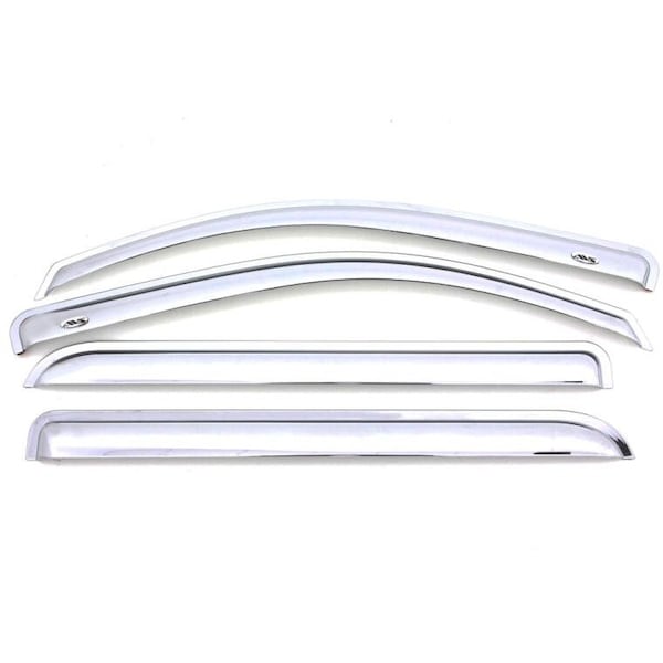 Rainguards, Aerodynamic Design, Tape-On, Chrome, Thermoplastic, Set Of 4