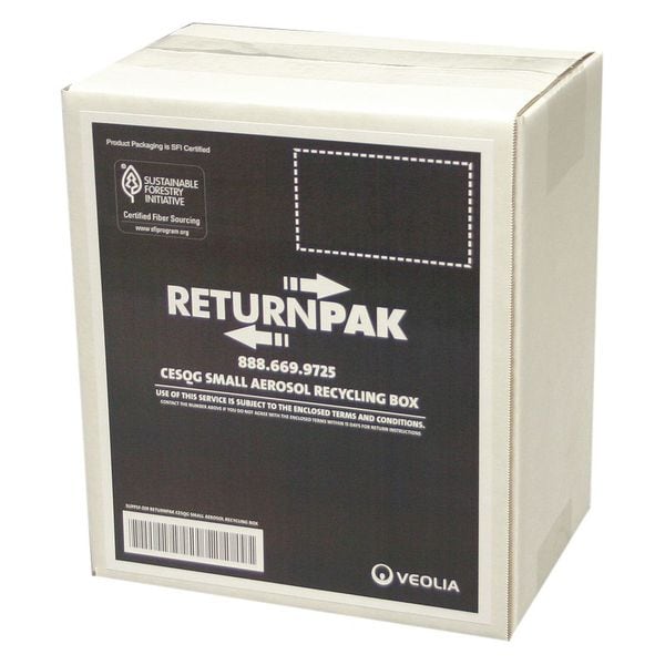 Aerosol Can Recycling System, Volume Capacity 6 Cans, Weight Capacity 3 lb, 6 in Depth, Prepaid Disposal Included Prepaid Disposal Included, Includes 12 in x 12 in Absorbent Pad, 4 mil Liner, Corrugated Box, Diamond Label, Liner Tie, For Use With Aerosol Spray Cans