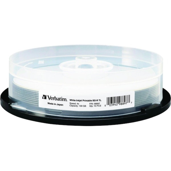 VERBATIM BDXL 100GB 4X WHITE INKJET HUB PRINTABLE-10PK SPINDLE