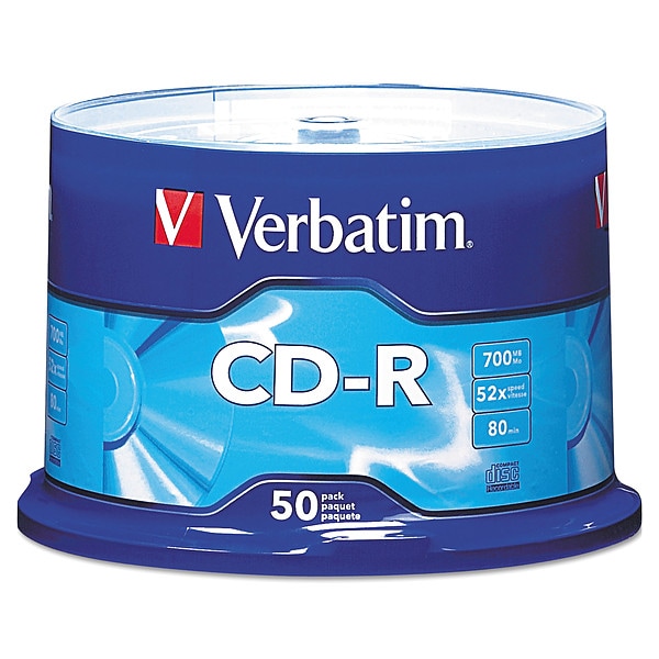 CD-R Disc, Capacity 700 MB, Time 80 min, Speed 52x, Packaging Spindle, Surface Type Branded, Color Silver, Includes Plastic Container, Package Quantity 50