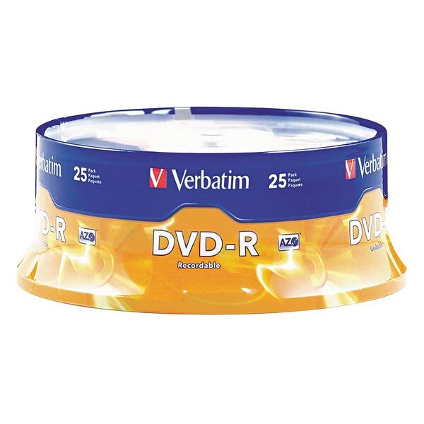 DVD-R Disc, Capacity 4.7 GB, Time 120 min, Speed 16x, Packaging Spindle, Surface Type Branded, Color Silver, Package Quantity 25