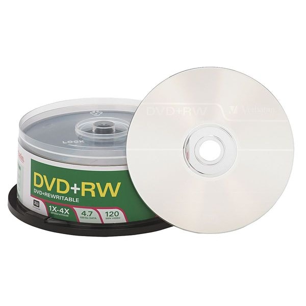 DVD-RW Disc, Capacity 4.7 GB, Time 120 min, Speed 4x, Packaging Spindle, Surface Type Branded, Color Silver, Includes Plastic Container, Package Quantity 30
