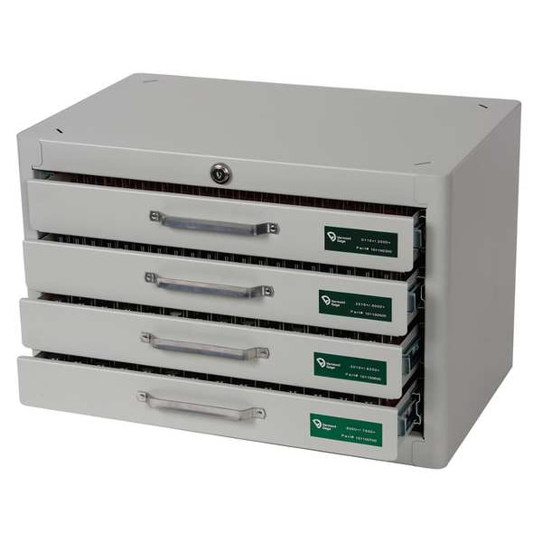 Black Oxide-Coated Pin Gauge Library, Material Tool Steel, Finish Black Oxide, Diameter Increment 0.001 in, Diameter Range 0.0610 in to 0.7500 in, Gauge Type No-Go (Minus), Number of Gauges 690, Overall Length 2 in, Surface Finish Uncoated, Tolerance +/-0.00020 in, Tolerance Class ZZ, Hardness RC 60/65, Included Certification Certificate of Accuracy, Includes Handle No, Long Form Calibration Certificate No, Number of Drawers 4, Standards ISO 17025:2005, Dimension Type Inch