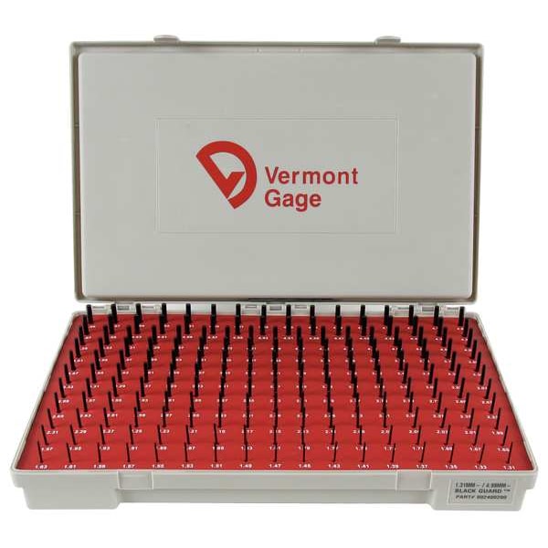 The Vermont Gage 902400200 Pin Gage Set offers a complete range of pin gages for gauging the size of holes. This set is ideal for use in the aerospace, defense, electrical and other industries. It features a black oxide-coated finish that helps to resist corrosion. The cylindrical shape allows you to work on blind holes as well as through holes. These pin gages are available in various widths to suit your needs. The high quality tool steel construction ensures that these pin gages will stand up to heavy use and provide years of service. Whether you need them for fastener applications or another purpose, you'll want the Vermont Gage 902400200 Pin Gage Set at your side.
