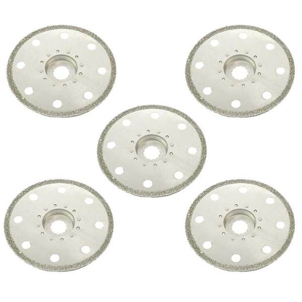 Versa Tool SB5ZZ 100mm Full Round Electroplated Diamond Grout Blade, 10mm Offset Mount Fits Fein Multimaster, Rockwell, Sonicrafter, Makita Oscillating Tools - 5/Pack.Versa-Tool Full-Round diamond grout removal blades will effectively remove grout joints during tile repair tasks. The diamond coated surface outlasts carbide grit versions 10 to 1 and can be used for grinding and limited cutting of material such as glass, tile, ceramic as well as brick and masonry materials.