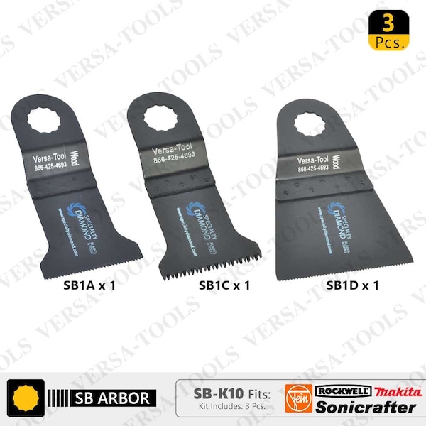 Versa Tool SB-K10 3 PC 45mm Standard 'E' Cut Wood and Plastic, Japan Cut Tooth HCS 65mm HCS Multi-Tool Saw Blades Set for Fein Multimaster, Rockwell, Sonicrafter, Makita Oscillating Tools (SB1A,1C,1D) 1 each.Type A: