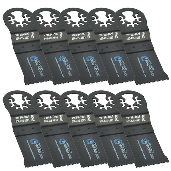 Versa Tool AB10A 35mm HCS Wood Cutting Multi-Tool Saw Blades 10/Pk Fits Fein Multimaster, Dremel, Bosch, Craftsman, Ridgid Oscillating Tools.The 35mm HCS saw blade is Ideal for flush cuts and cut-outs in hard, nonmetallic materials such as hardwoods, plywood and particle board this wood blade can also tackle materials such as plastics, fiberglass and Plexiglas. The Versa-Tool HCS blade is manufactured with a durable 19 TPI cutting edge that resists wear and cuts quickly.