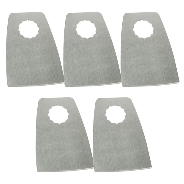 Versa Tool FB5N 52mm Flat Cut Stainless Steel Scraper Fits Fein Supercut Oscillating Tools - 5/Pack.Made from stainless steel, the flexible flat scraper is ideal for removing paint, glue, tar, old varnish, floor coatings and countless other material from flat, delicate and hard surfaces. Ideal attachment to effectively remove material from glass, wood, plastic and metals without damage. Use this sharp tool to effectively cut materials including carpet, vinyl, fabric, fiberglass mesh and leather. The flat, flexible design allows the blade to conform to irregular working surfaces.