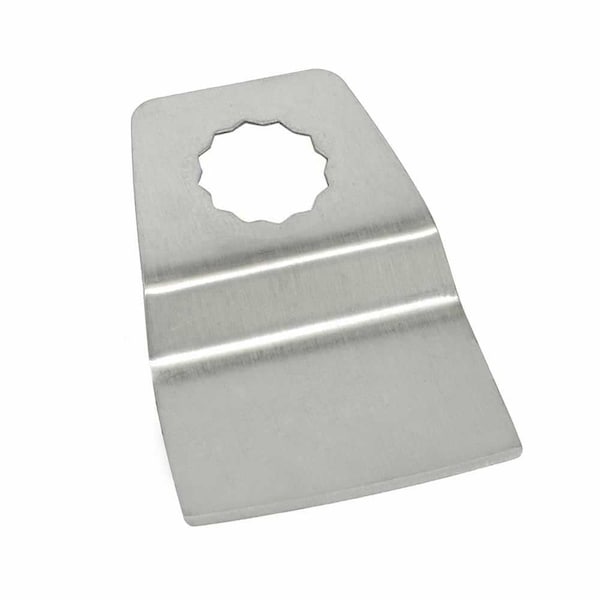 Versa Tool FB1M-D 52mm Flush Cut (8mm Offset Mount) Stainless Steel Scraper Fits Fein Supercut Oscillating Tools - Single Display Pack.Made from stainless steel, this flush cut scraper is ideal for removing paint, glue, tar, old varnish, floor coatings and countless other material from flat, delicate surfaces. Ideal attachment to effectively remove material from glass, wood, plastic and metals without damage. Use this sharp tool to effectively cut materials including carpet, vinyl, fabric, fiberglass mesh and leather. Curved blade design allows for flush cutting and scraping applications.