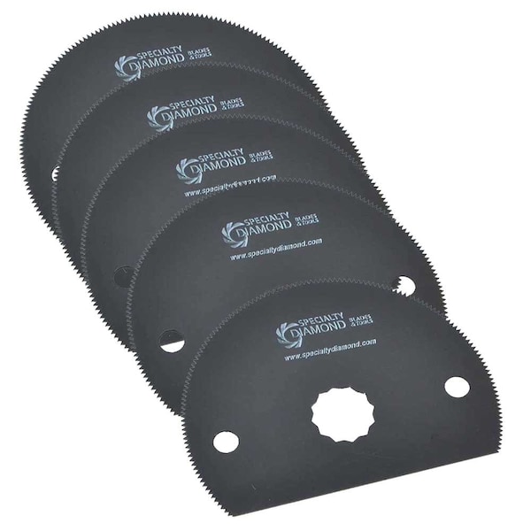 Versa Tool SB5I 80mm HSS Semi-Circular Multi-Tool Saw Blades 5/Pack Fits Fein Multimaster, Rockwell, Sonicrafter, Makita Oscillating Tools.Made from high speed steel, the 80mm wood and metal cutting blade is ideal for making precise cuts in nail embedded wood, drywall and plaster material. Applications include cutting openings in flooring for venting, repairing damaged flooring and cutting openings for electrical boxes. The blade can also be used for cutting metal materials such as copper, tin, aluminum and nails.