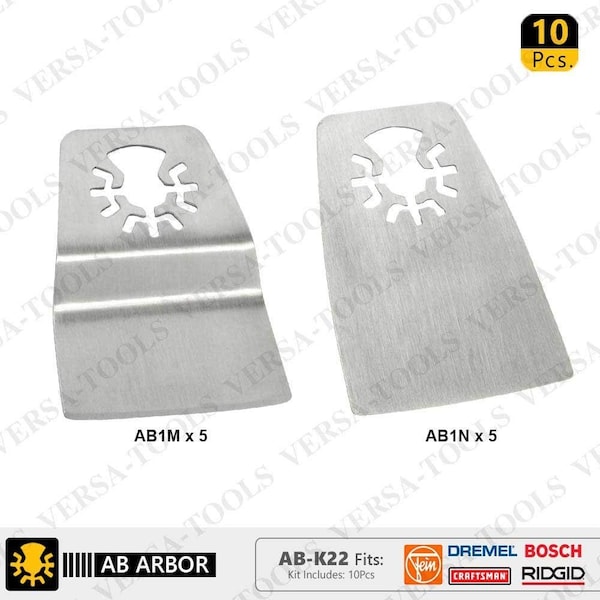 Versa tool ab-k22 10 pc 52mm flush cut (8mm offset mount), flat cut stainless steel scraper kit compatible with fein multimaster, dremel, bosch, craftsman, ridgid oscillating tools