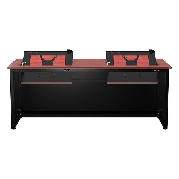 Computer Desk, Desktop Color Cherry, Desktop Material Metal, Frame Color Black, Frame Material Steel, Includes Keyboard Tray Yes, Includes Modesty Panel Yes, Number of Cable Holes Not Applicable, Number of Drawers 0, Number of Pedestals Not Applicable, Overall Depth 30 in, Overall Height 29 in, Overall Width 72 in, Pedestal Location Not Applicable, Product Type Computer Desk, Standards BIFMA