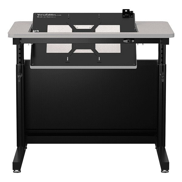 Standing Desk, Product Type Standing Desk, Maximum Desktop Height 36 in, Minimum Desktop Height 24 in, Overall Width 36 in, Overall Depth 24 in, Desktop Material Wood, Desktop Color Gray, Weight Capacity Not Applicable, Frame Material Laminate, Steel, Number of Shelves 2, Frame Color Black, Height Adjustment Continuity Continuous, Number of Casters/Glides Not Applicable, Caster/Glide Diameter Not Applicable, Caster/Glide Type Not Applicable, Adjustment Mechanism Manual
