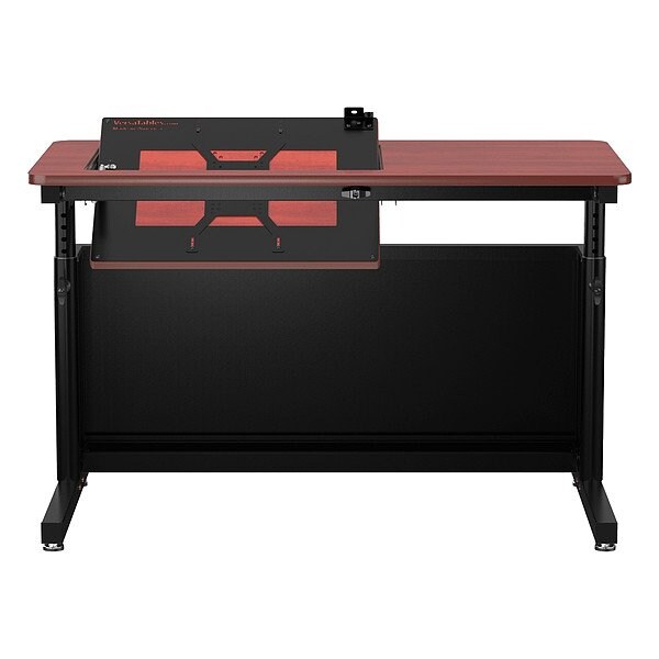 Standing Desk, Product Type Standing Desk, Maximum Desktop Height 36 in, Minimum Desktop Height 24 in, Overall Width 48 in, Overall Depth 24 in, Desktop Material Wood, Desktop Color Cherry, Weight Capacity Not Applicable, Frame Material Laminate, Steel, Number of Shelves 2, Frame Color Black, Height Adjustment Continuity Continuous, Number of Casters/Glides Not Applicable, Caster/Glide Diameter Not Applicable, Caster/Glide Type Not Applicable, Adjustment Mechanism Manual