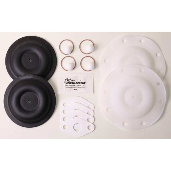 Elastomer Kit, Check Ball Material PTFE, Compatible with Grainger Part Number 20LR18, Compatible with Manufacturer Model Number E5AP5T559C, Diaphragm Material PTFE, Number of Check Balls 4, Number of Diaphragms 2, Number of O-Rings 4, Number of Seals 0, Valve Type Ball, Product Type Fluid End Repair Kit, Media Intake Pressure (Maximum) 100 psi, Compatible with Pump Type Air Operated Double Diaphragm Pump, Compatible with Brand Versa-Matic, Includes Check Balls, Diaphragms, O-Rings, Seats
