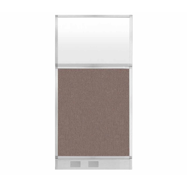 Hush Panel Configurable Cubicle Partition 3' x 6' Latte Fabric Frosted Window w/ Cable Channel