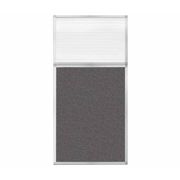 Hush Panel Configurable Cubicle Partition 3' x 6' W/ Window Charcoal Gray Fabric Clear Fluted Window